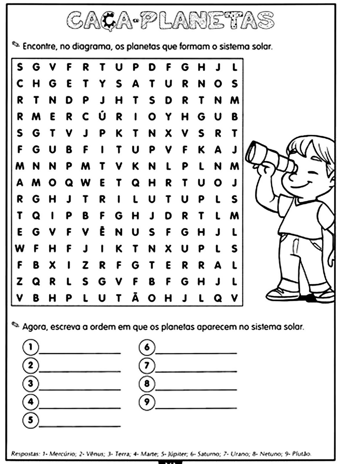 VAMOS FAZER AATIVIDADE? QUESTÃO1ENCONTRE NO CAÇA PALAVRAS ABAIXO OS NOMES DOS PLANETAS QUE COMPÕEM OSISTEMASOLAR.