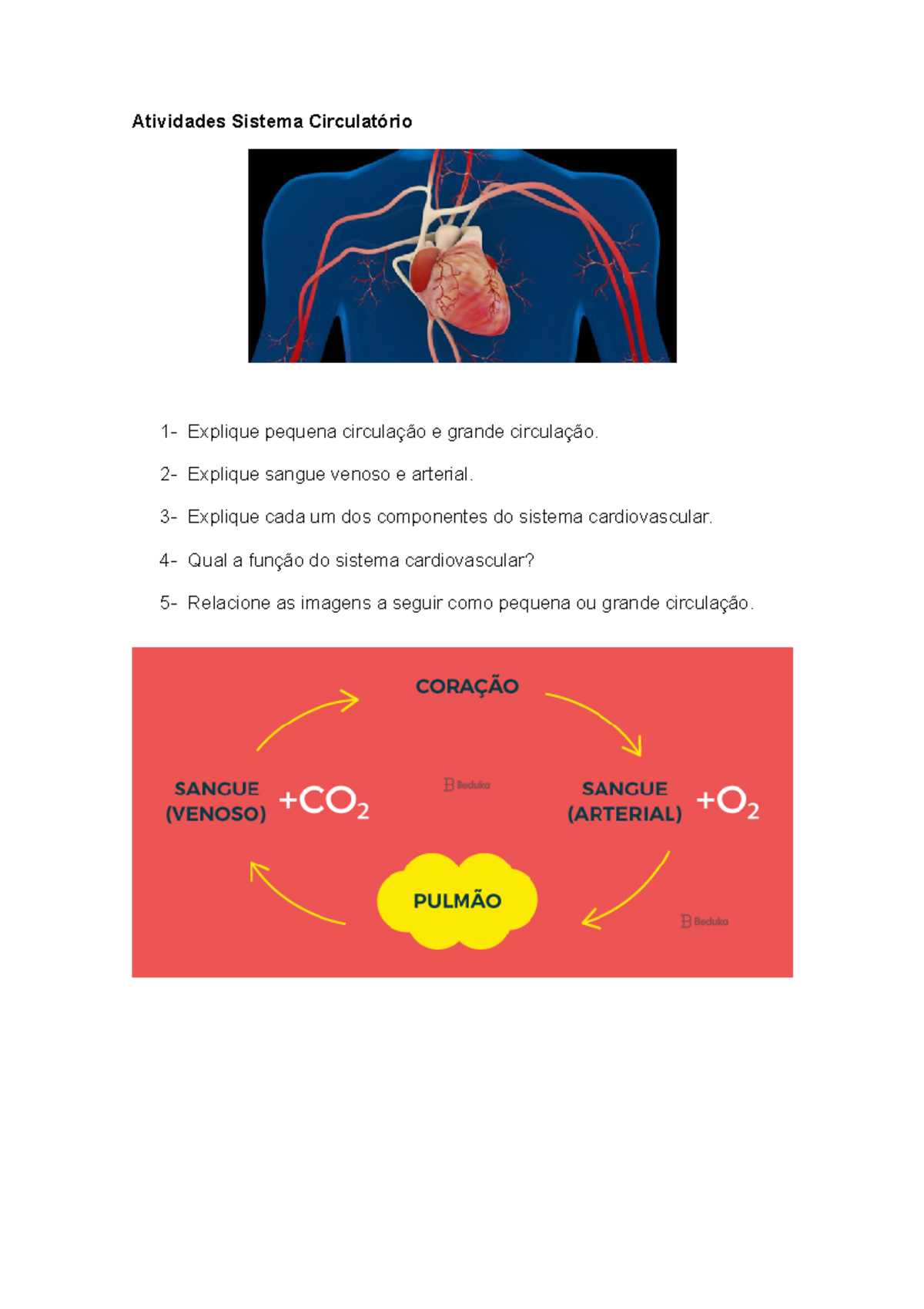 Atividadede ciências, indicada aos alunos do 4ºanoe 5ºano,comquestõessobreosistemacirculatório.Atividadecomrespostas.