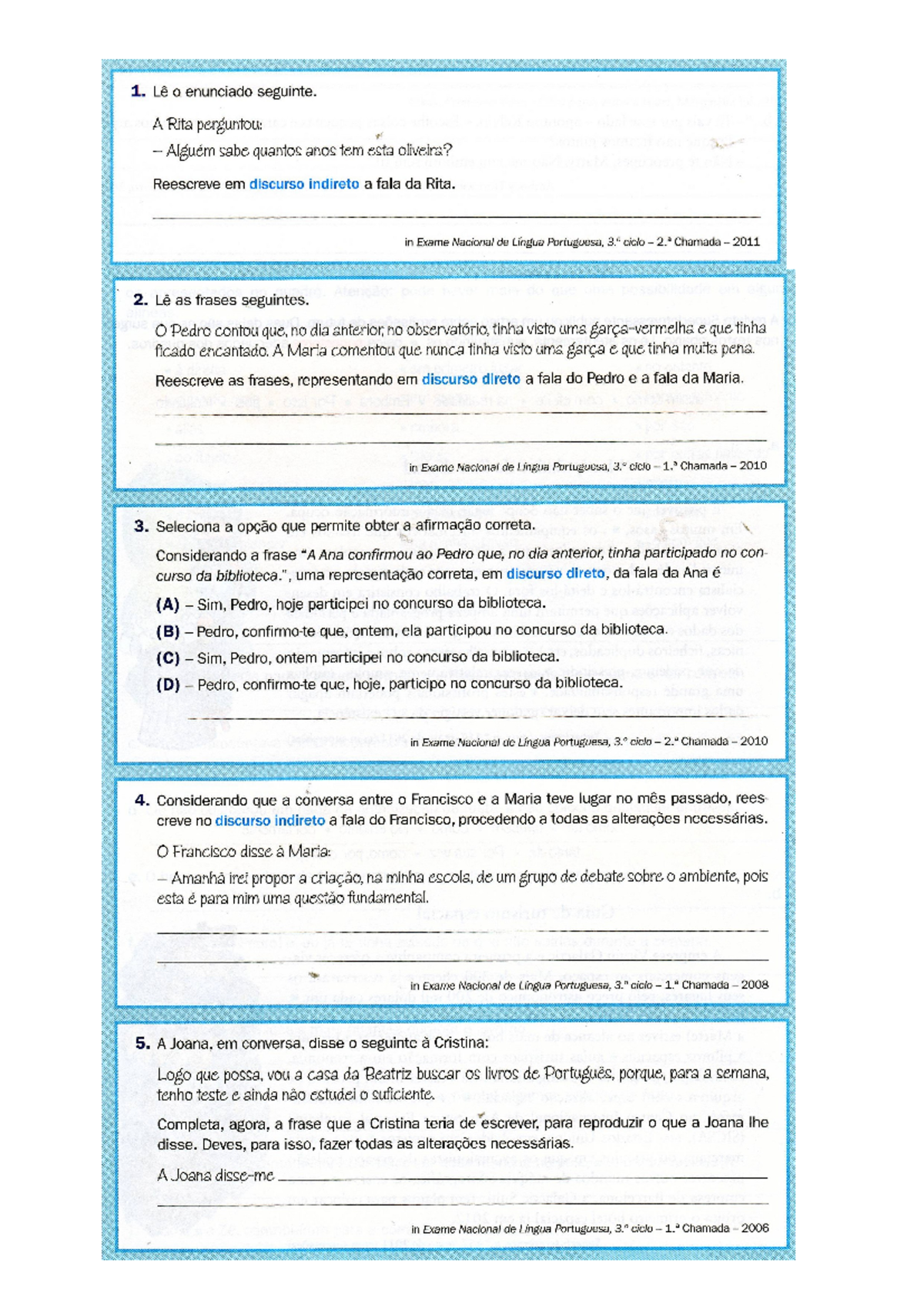 Exercícios Discurso Direto E Indireto 6 Ano Com Gabarito