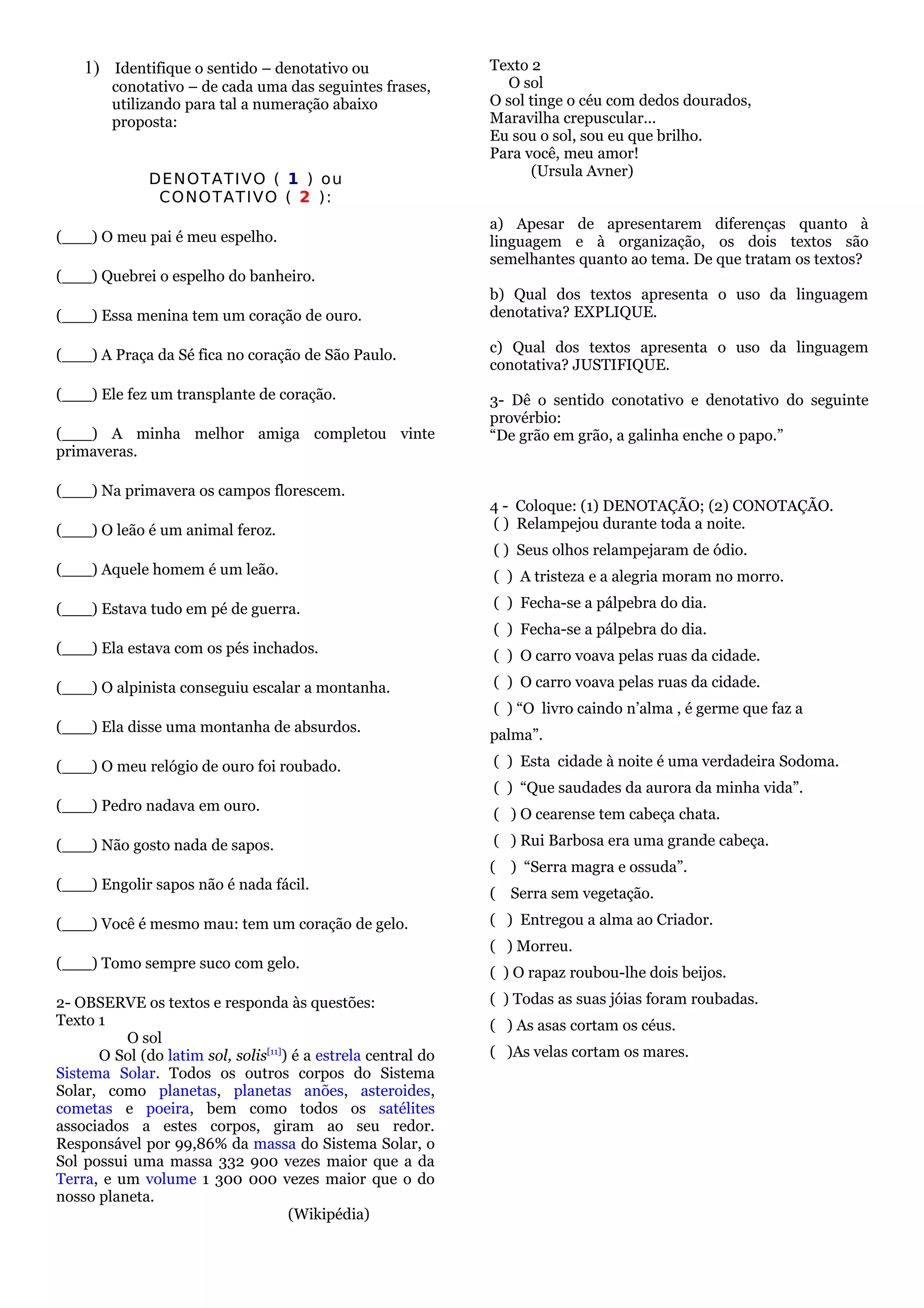 Exercícios Sobre Conotação E Denotação 7 Ano Com Gabarito - BINKEDU