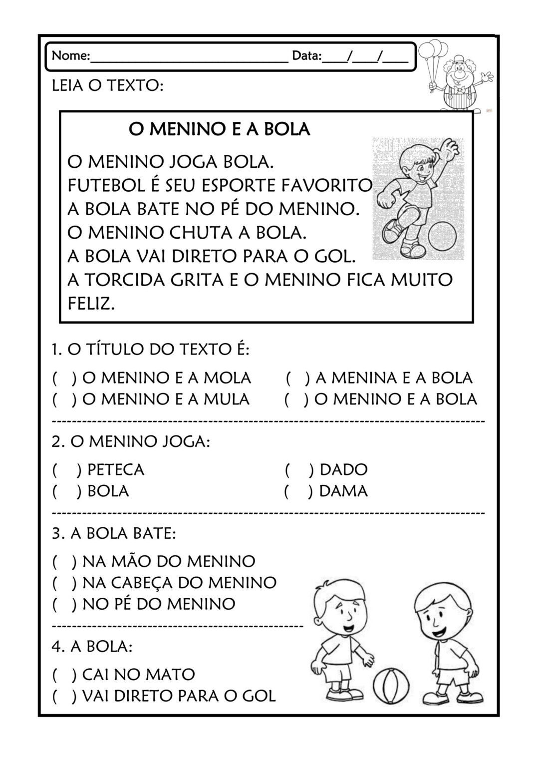 Simples Atividades Alfabetização Leitura E Interpretação De Texto 1 Ano
