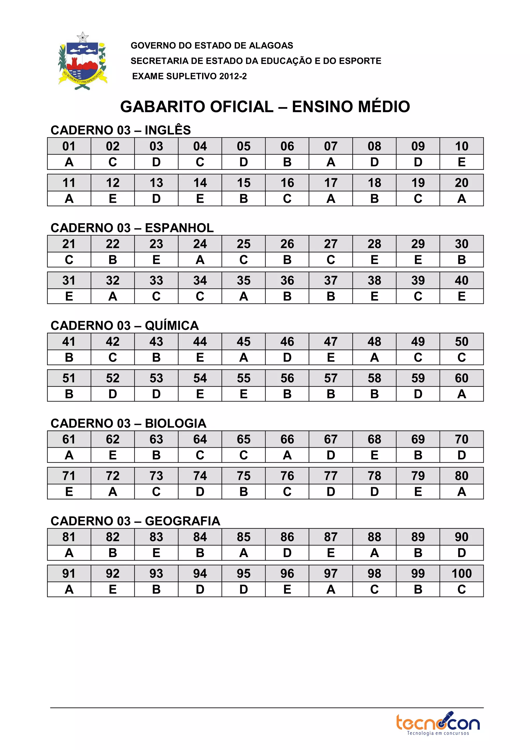 Supletivo gabarito ensino médio | PDF